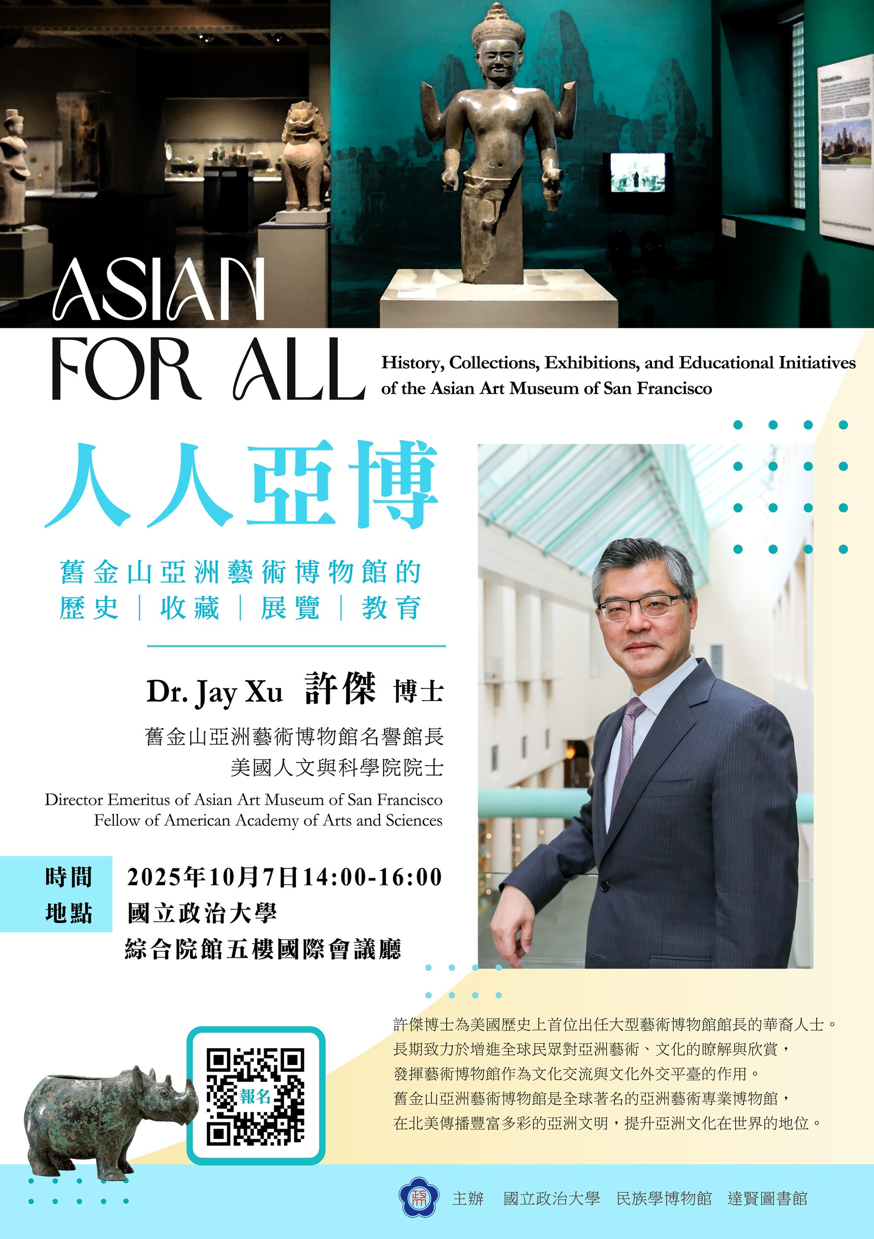 轉知:政治大學舉辦「人人亞博:舊金山亞洲藝術博物館的歷史、收藏、展覽和教育」專題演講