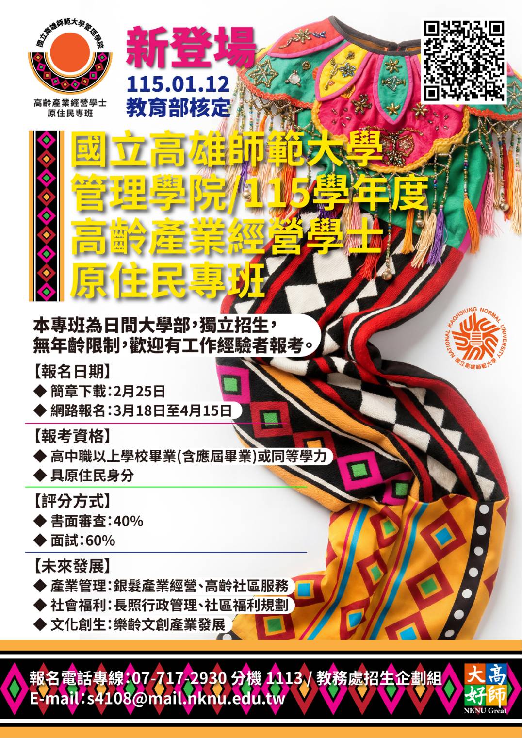 [海報]國立高雄師範大學115學年度「高齡產業經營學士原住民專班」招生資訊.jpg