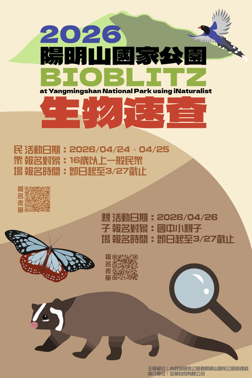 【轉知】陽明山國家公園生物速查活動簡章,歡迎報名參與~