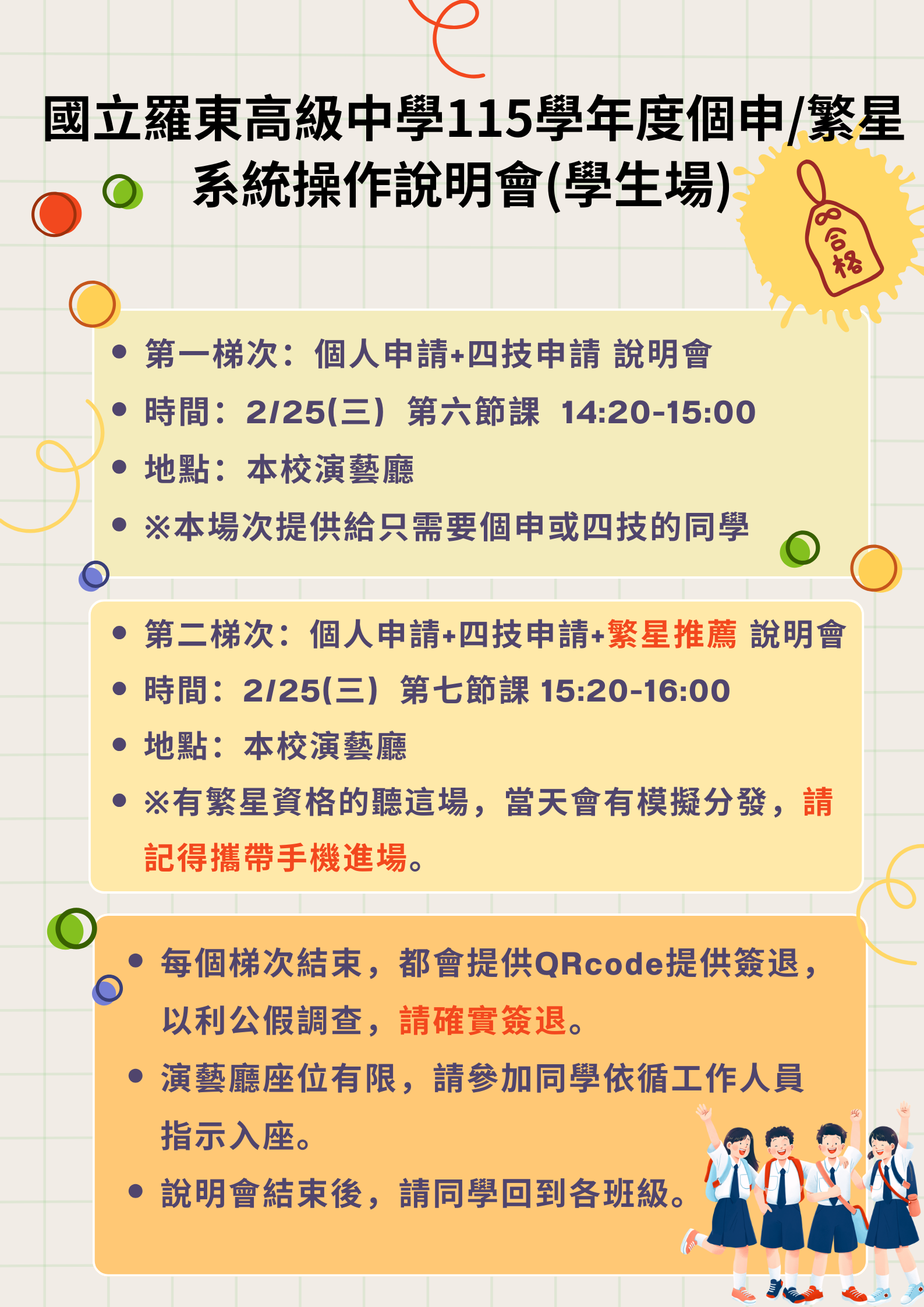 | 申請入學登記志願序 | 114/6/5~114/6/6 |